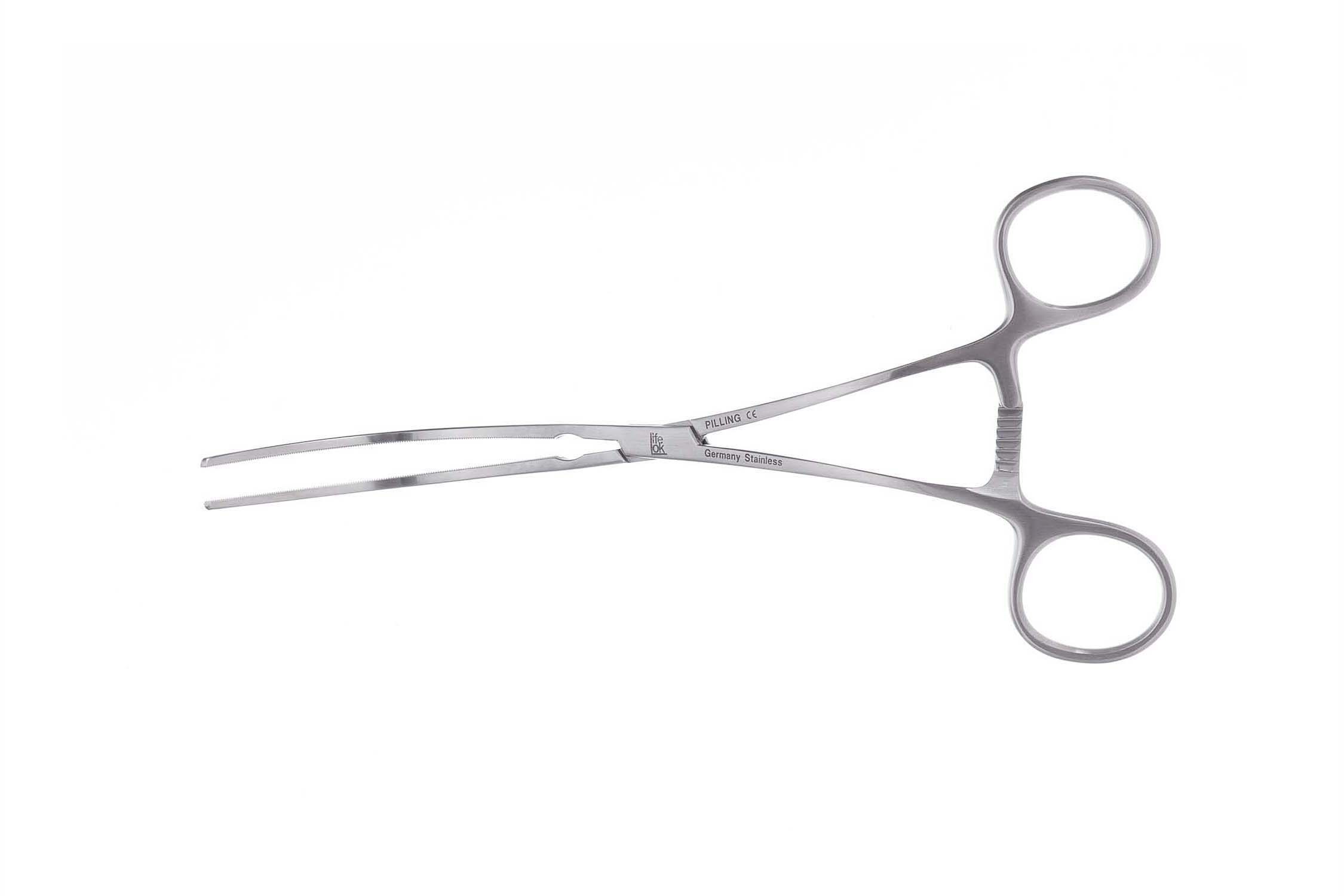 Curved, DeBakey Jaw, 4 1/4" (10.7cm) tip length, Curved shaft, 9 3/4" (25cm)